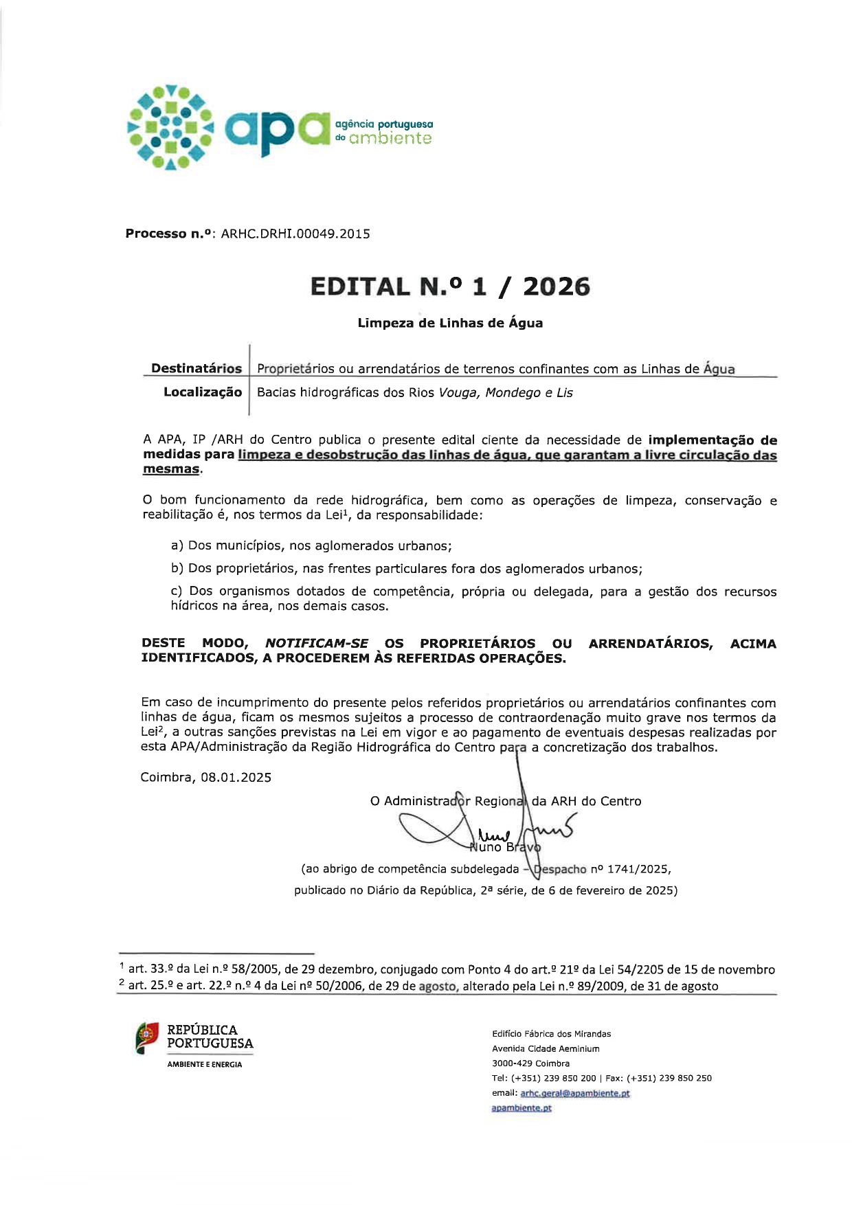 Limpeza de Linhas de Água e Normas de Limpeza - Edital 1/2026 e Cartaz