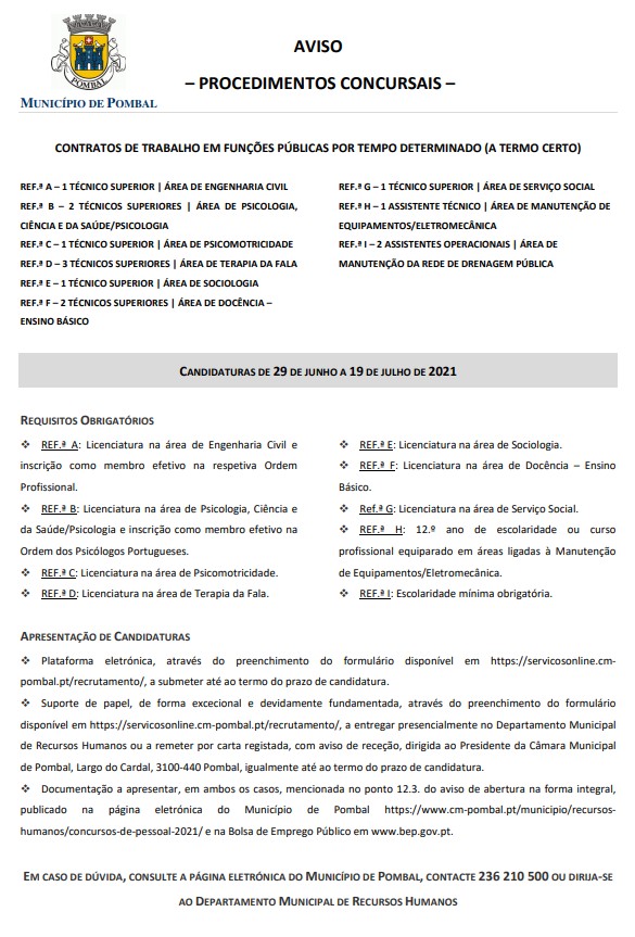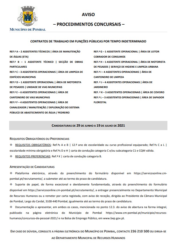 Aviso – procedimentos concursais de contratos de trabalho em funções públicas por...