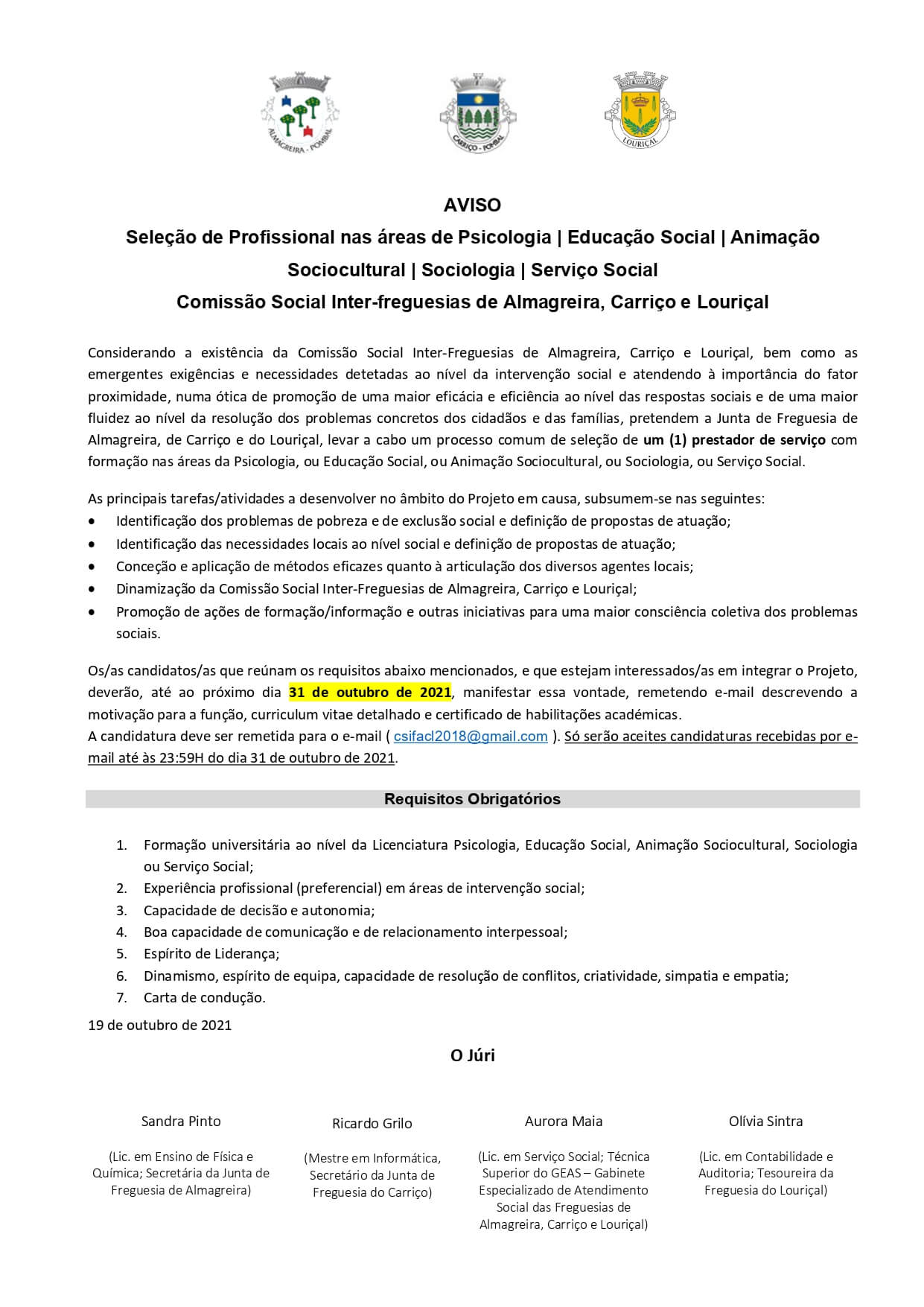 Seleção de Profissional nas áreas de Psicologia, Educação Social, Animação Sociocultural, Sociologia,...